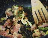 Tambahkan ayam tumis sebentar lalu masukkan daun bawang iris.